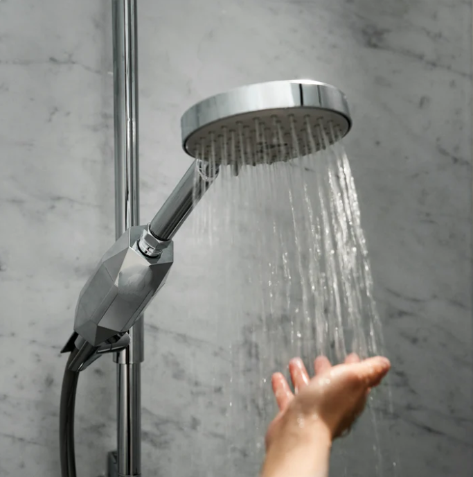 A água dura em Portugal afeta a pele e o cabelo. O AquaPure reduz calcário e impurezas para um banho mais saudável.